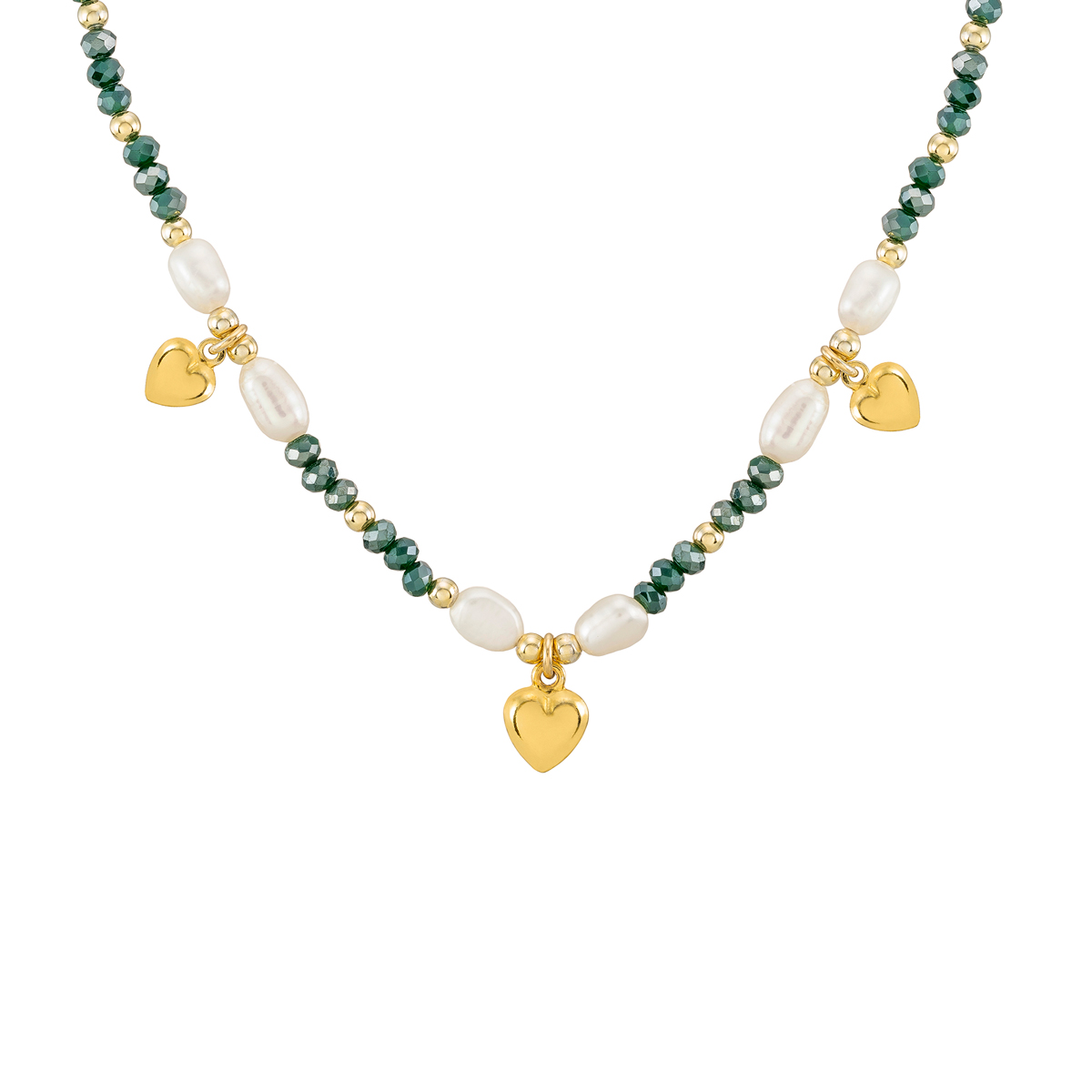 Gargantilla de plata chapada oro con perla blanca y olivinas