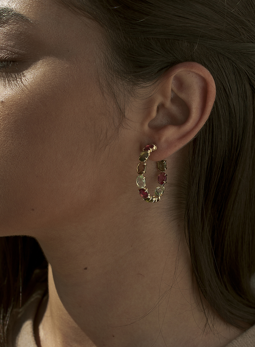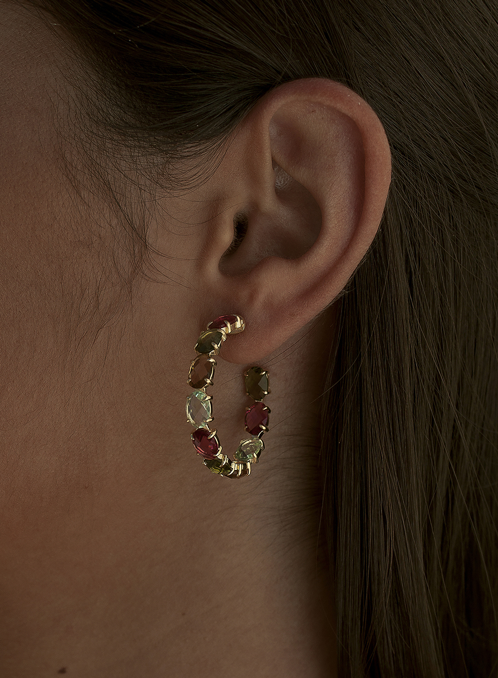 Pendientes aros con piedras plata bañados oro amarillo para mujer. Pendientes de moda