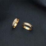 18K ALIANZA ORO BICOLOR TALLADA Y BORDES EN BRILLO, ANCHO: 4 MM, TALLA: 29