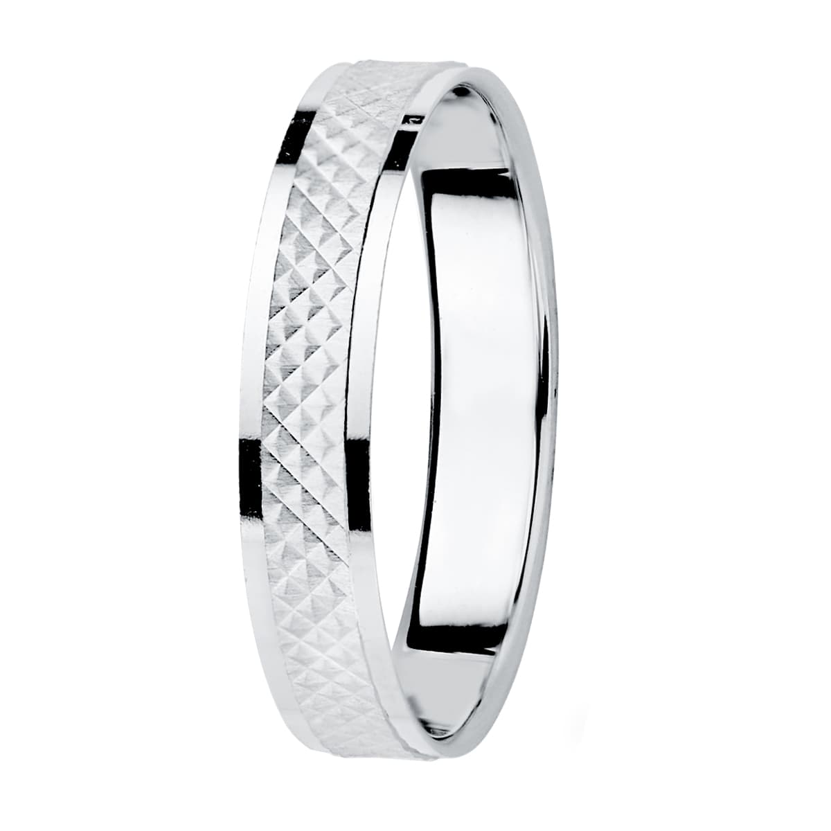 18K ALIANZA ORO BLANCO BORDES BRILLO Y CENTRO TALLADO, ANCHO: 3,5 MM