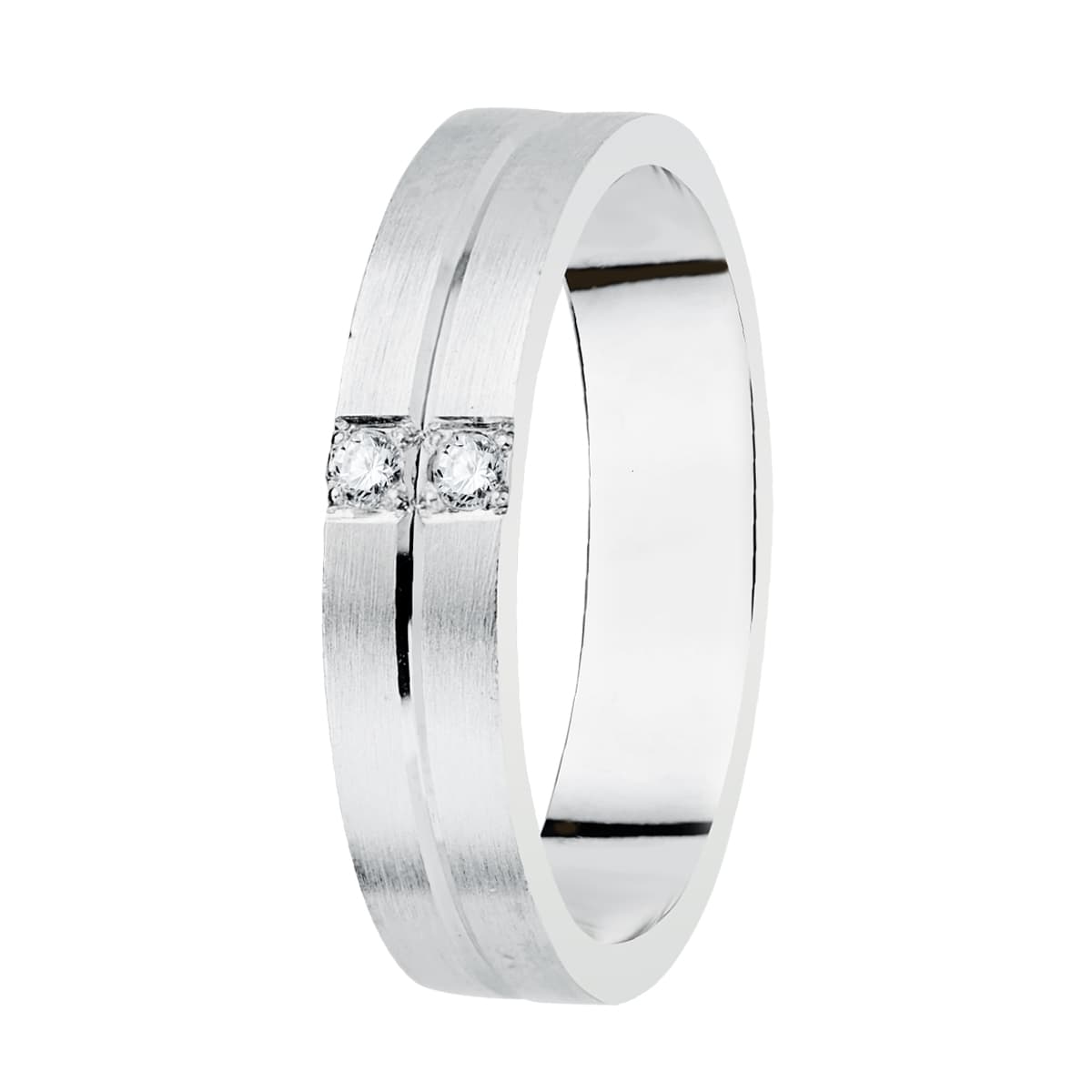 18K ALIANZA ORO BLANCO MATIZADA 2 DIAMANTES 0,06 QTS, ANCHO: 4MM, TALLA: 27