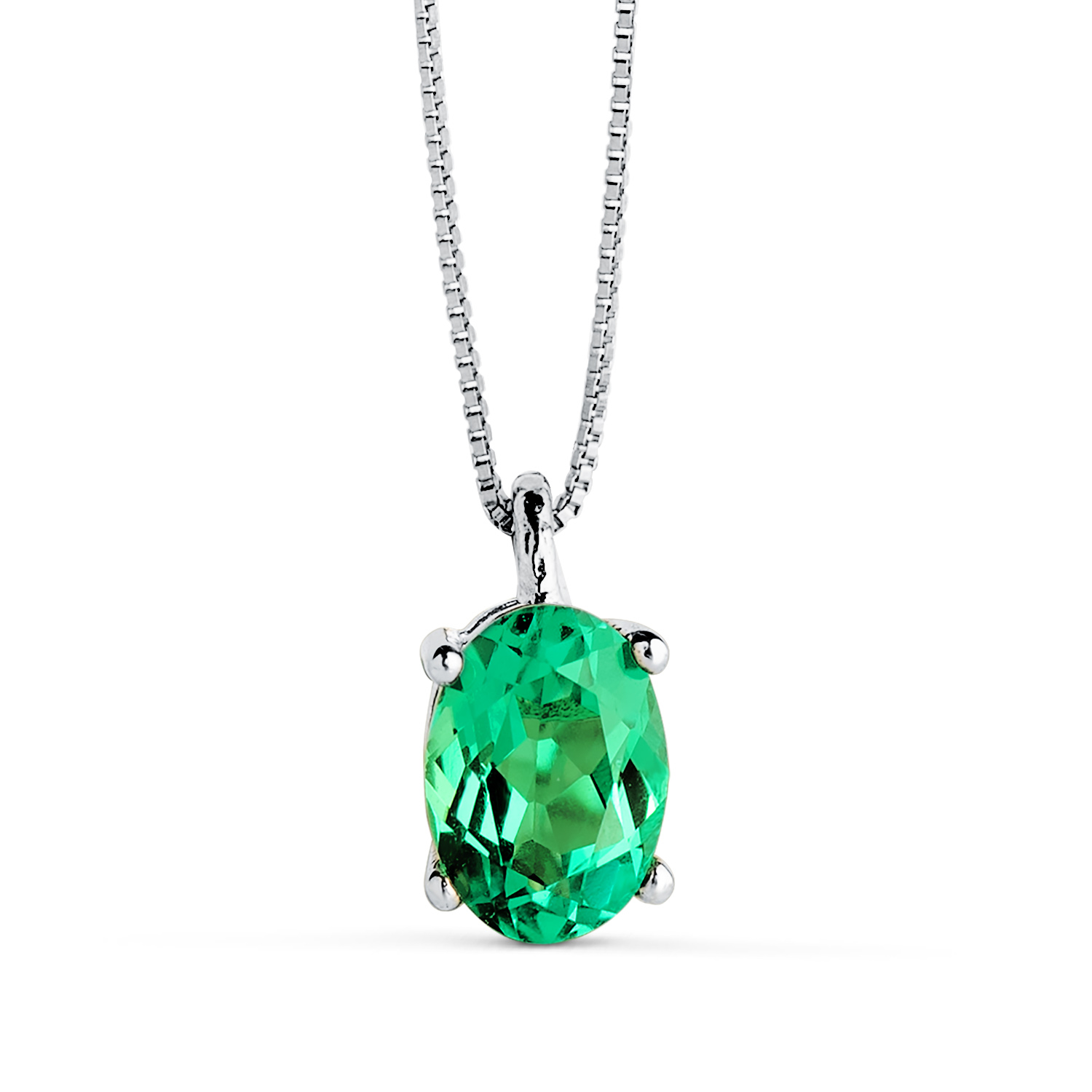 18K COLGANTE CON CADENA ORO BLANCO ESMERALDA RECRISTALIZADA 7X5 MM 0,79 QT, CADENA 42-3 CM