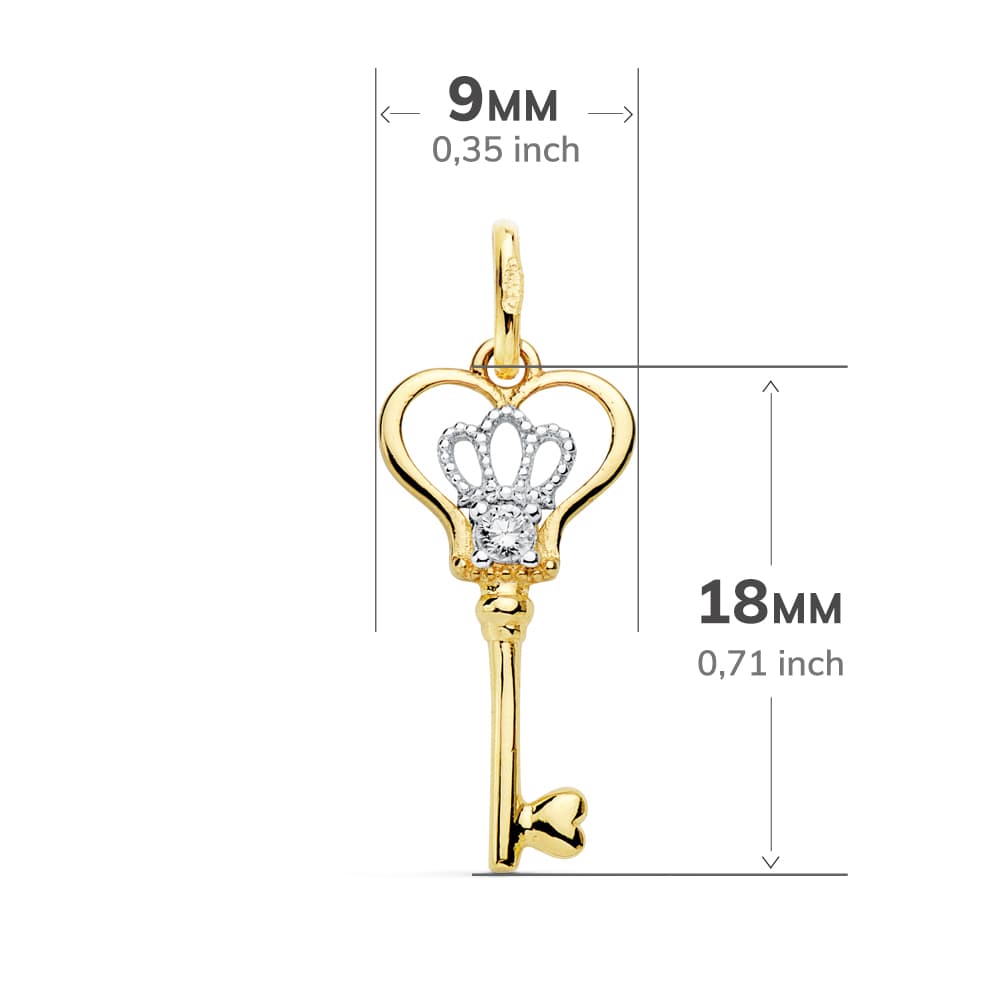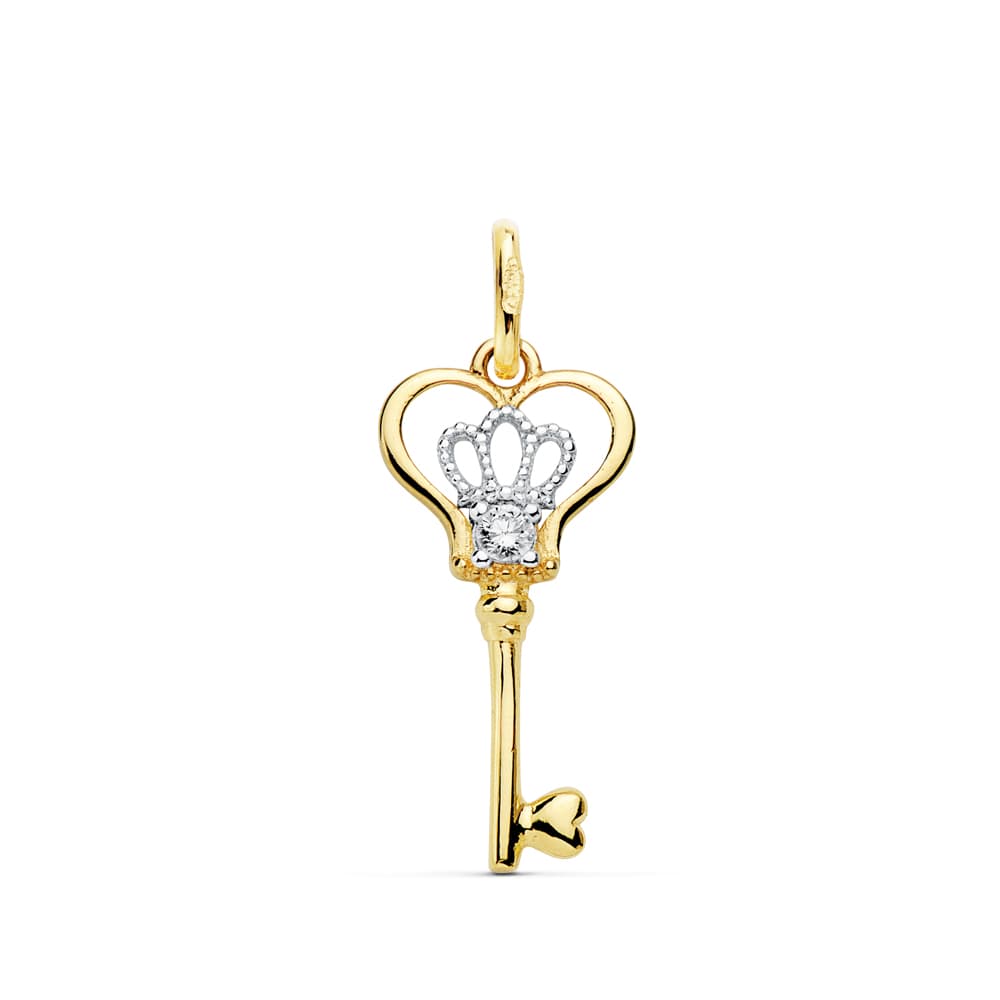 18K COLGANTE LLAVE BICOLOR CIRCONITA 18X9