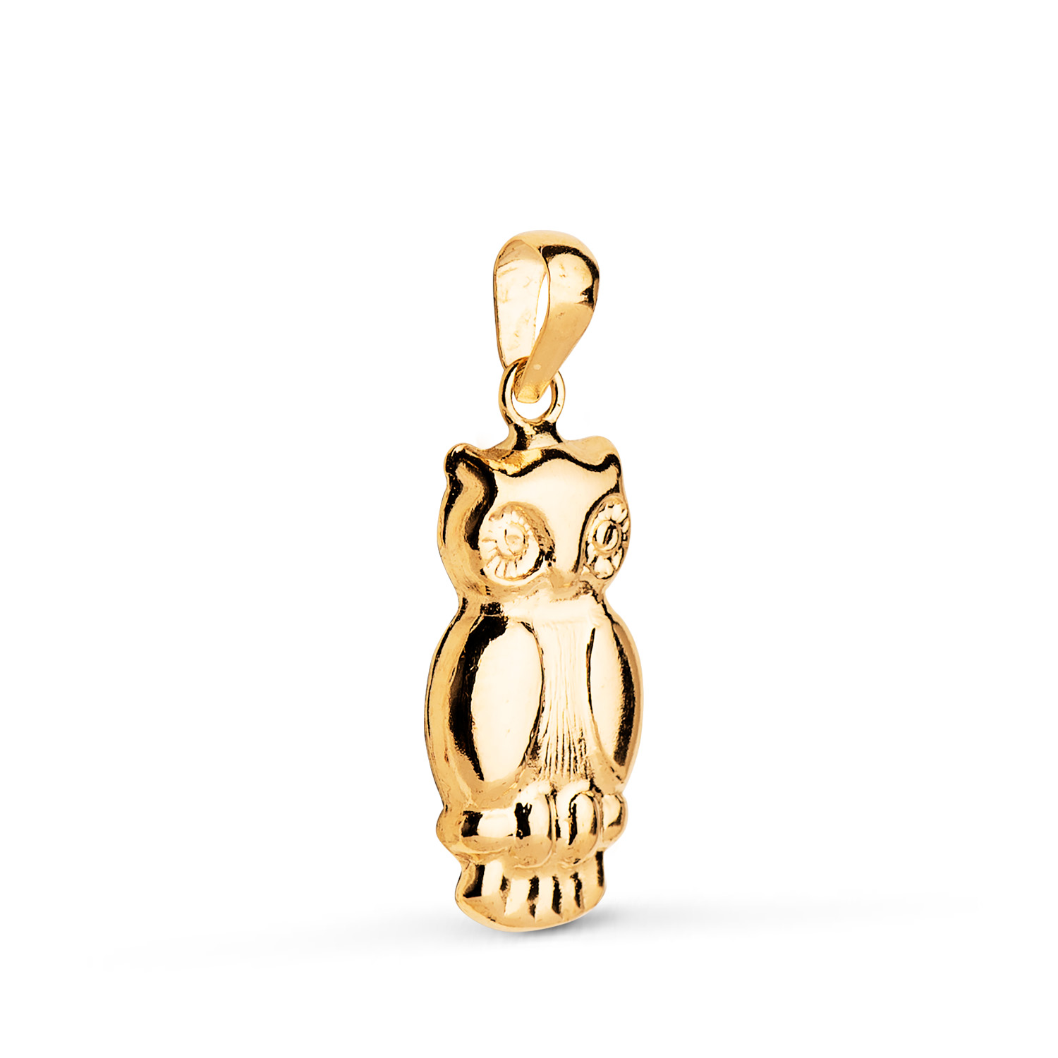 18K COLGANTE ORO AMARILLO BUHO EN BRILLO, MEDIDA: 19 X 9 MM
