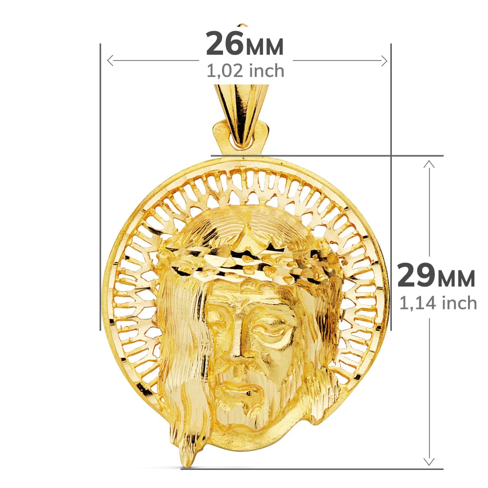18K COLGANTE ORO AMARILLO CABEZA DE CRISTO AUREOLA 29X26 MM