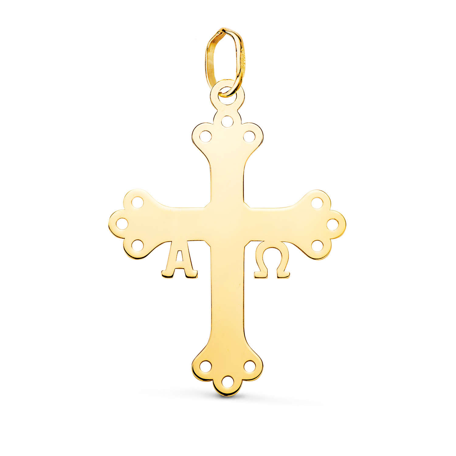18K COLGANTE ORO AMARILLO CRUZ DE COVADONGA SILUETA EN BRILLO, 27 X 20 MM