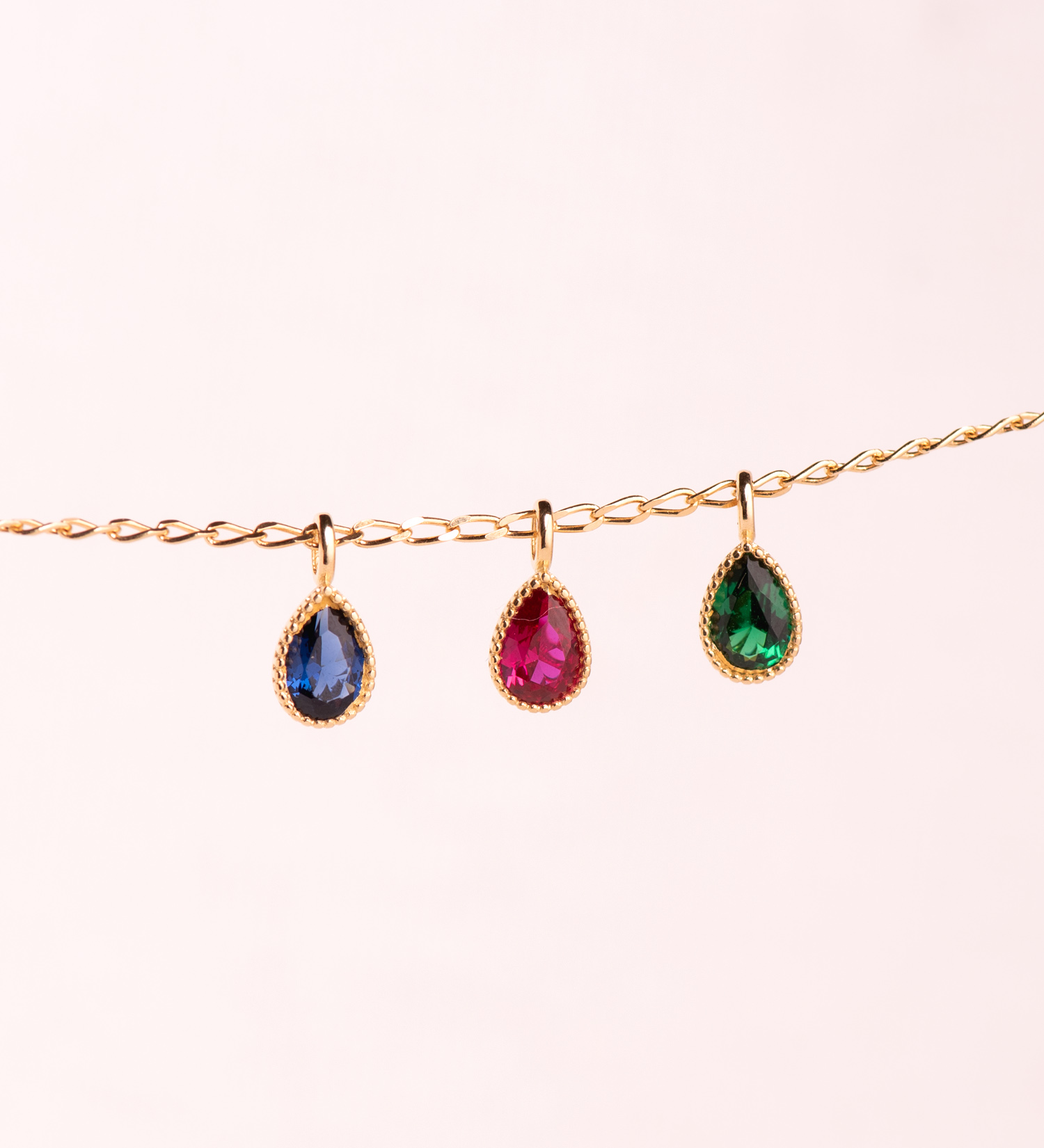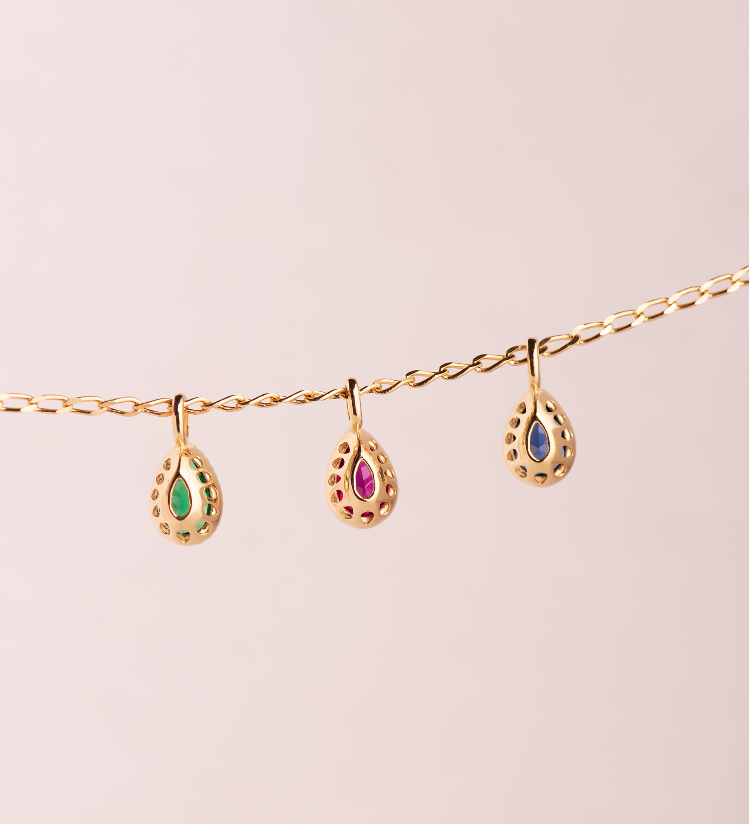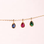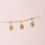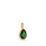 18K COLGANTE ORO AMARILLO GOTA PIEDRA VERDE BORDES BOLITAS. MEDIDA: 11 X 5MM