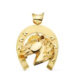 18K COLGANTE ORO AMARILLO HERRADURA CON CABALLO 50X44 MM