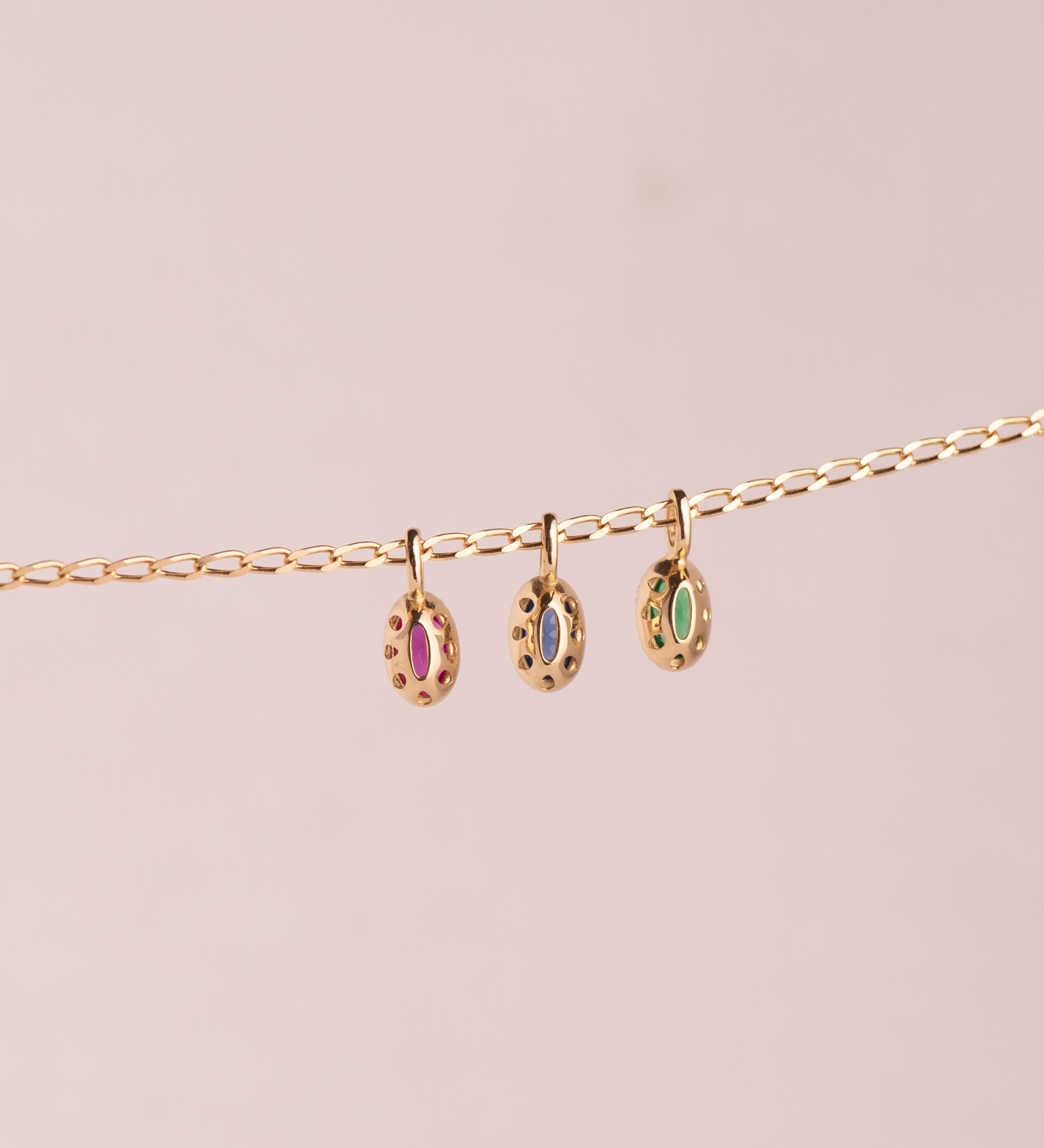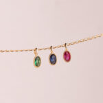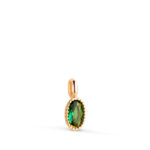 18K COLGANTE ORO AMARILLO OVAL PIEDRA VERDE BORDES BOLITAS. MEDIDA: 9 X 4MM