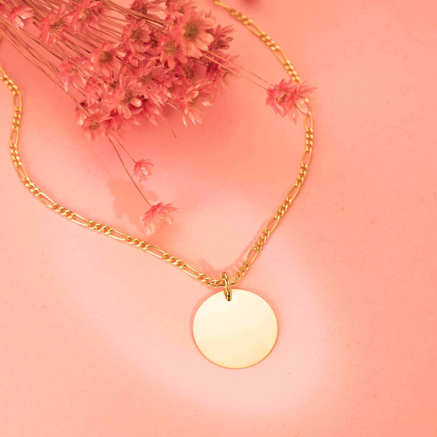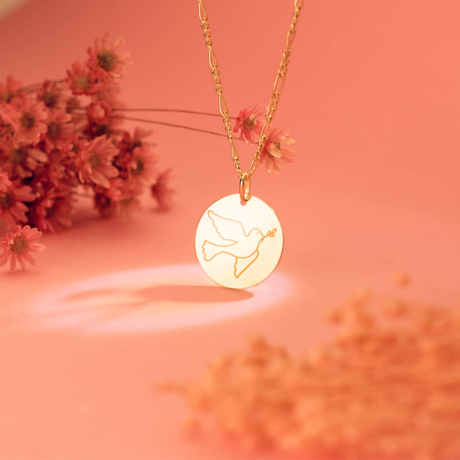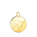 18K COLGANTE ORO AMARILLO REDONDO CON PALOMA GRABADA EN BRILLO 18 MM