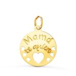 18K COLGANTE ORO AMARILLO REDONDO MAMA TE QUIERO CON CORAZONE CALADOS 15 MM