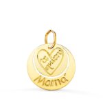 18K COLGANTE ORO AMARILLO REDONDO TE QUIERO MAMA CORAZON GRABADO, 14 MM