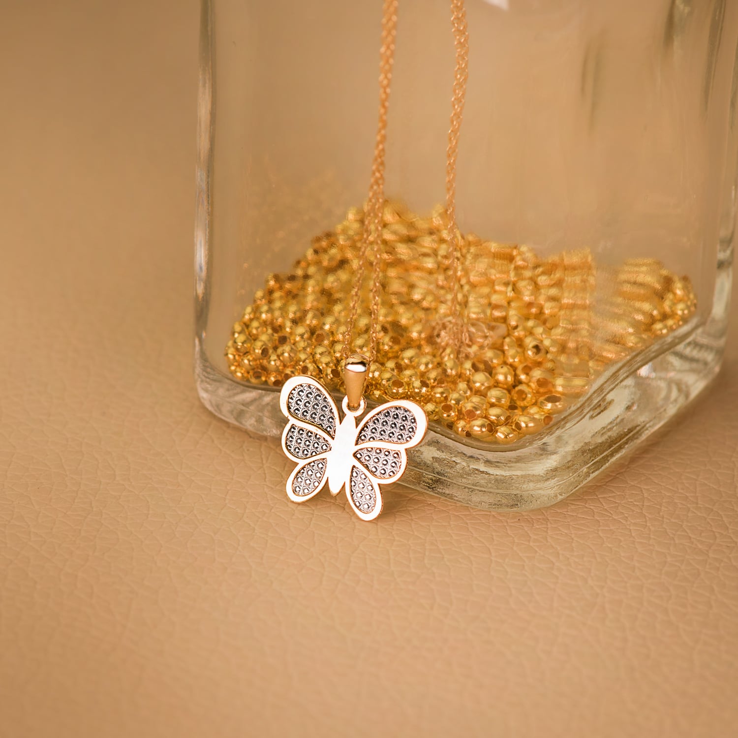 18K COLGANTE ORO BICOLOR MARIPOSA INTERIOR TALLADO 17X14 MM