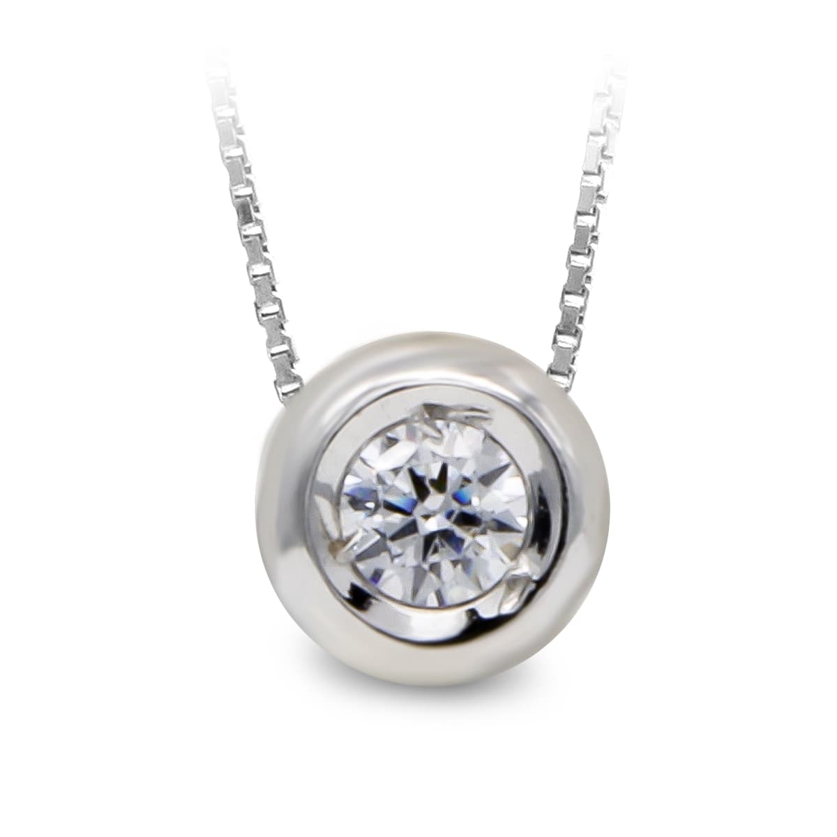 18K COLGANTE ORO BLANCO CHATON 5 MM CADENA 45CM