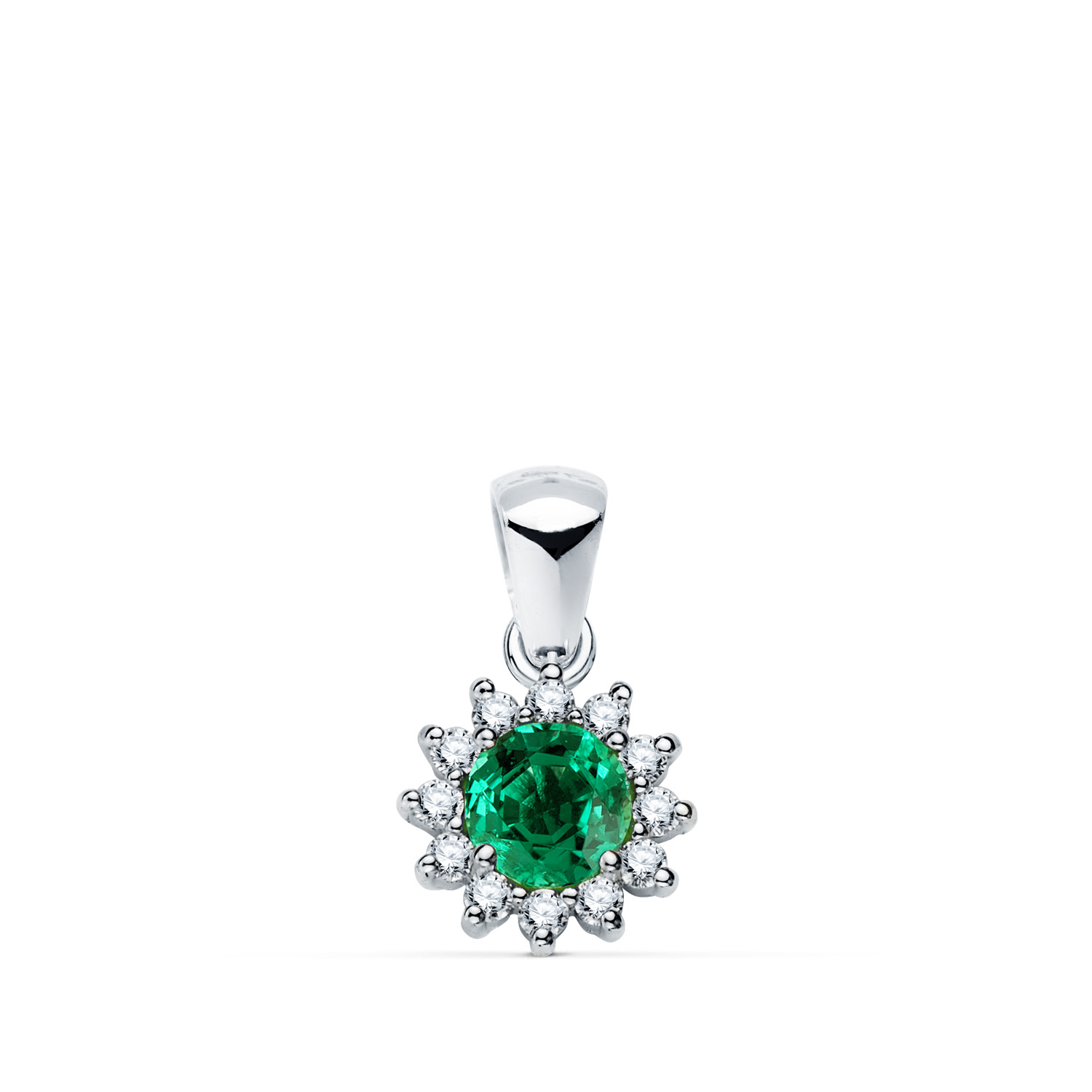18K COLGANTE ORO BLANCO ESMERALDA 5 MM 0,48 QT, 12 DIAMANTES LABORATORIO 0,170 QTS, VS2-G, 9 MM