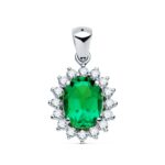 18K COLGANTE ORO BLANCO ESMERALDA 9X7 MM 1,74 QTS, DIAMANTES LABORATORIO VS2-G 0,52 QTE 14X12 MM