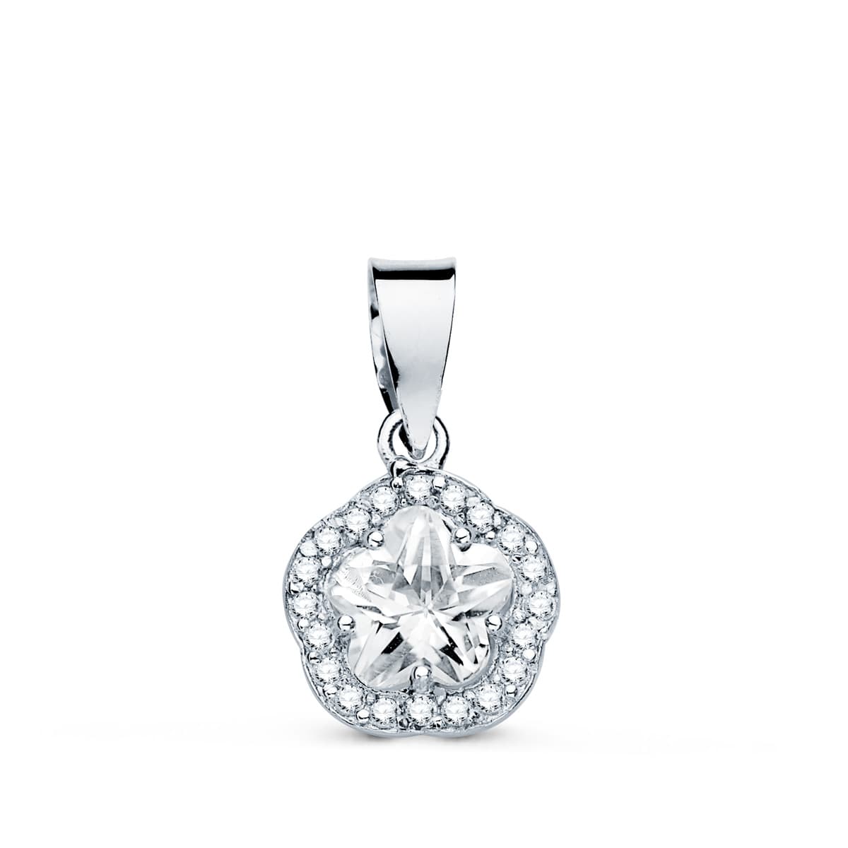18K COLGANTE ORO BLANCO FLOR CON CIRCONITA 9X9 MM