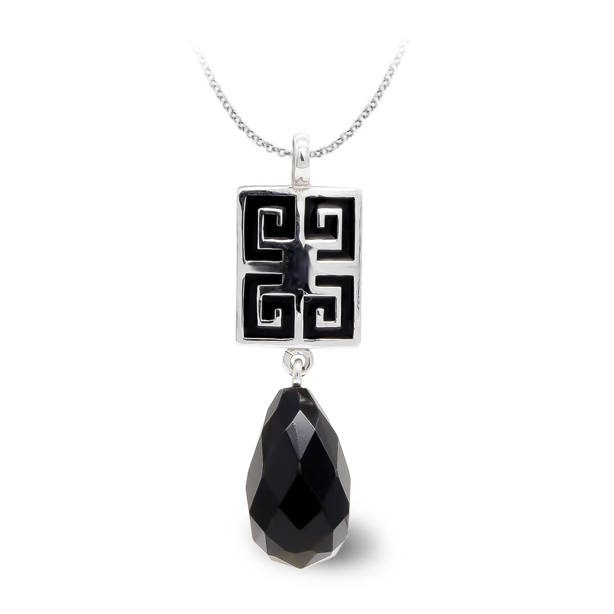 18K COLGANTE ORO BLANCO ONIX PERA