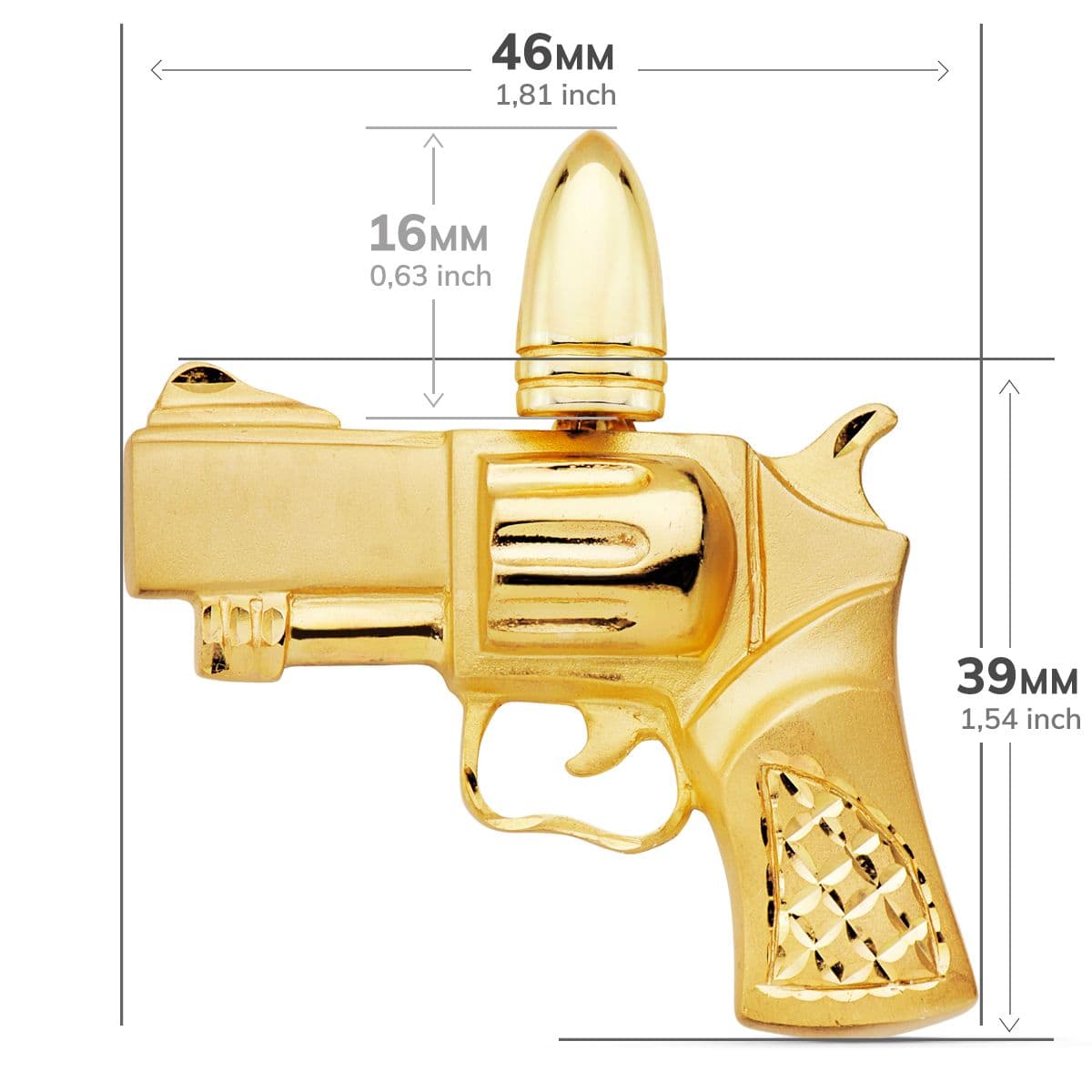 18K COLGANTE PISTOLA ORO AMARILLO 46X39 MM