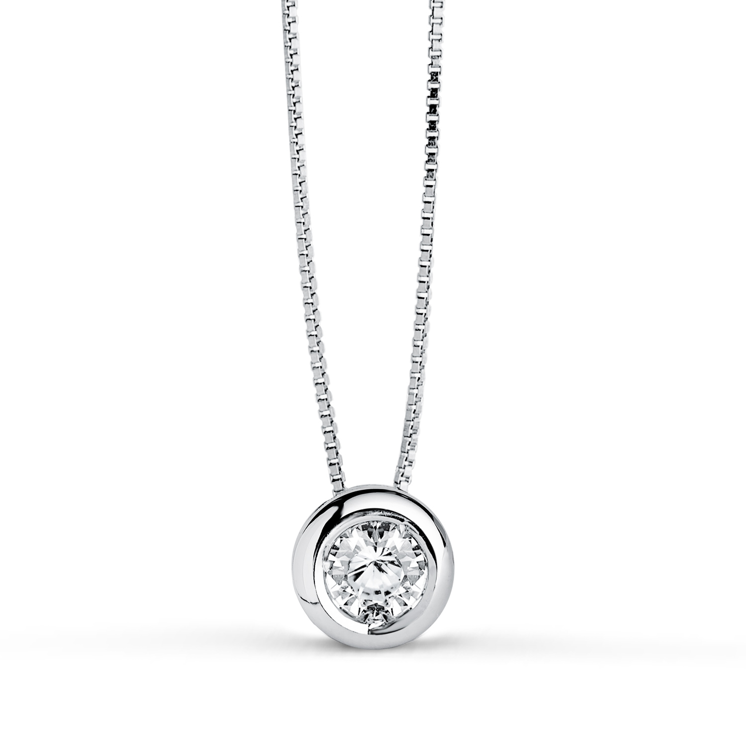 18K COLLAR ORO BLANCO CON CHATON Y CIRCONITA. ANCHO: 6,5 MM. CADENA VENECIANA 45CM