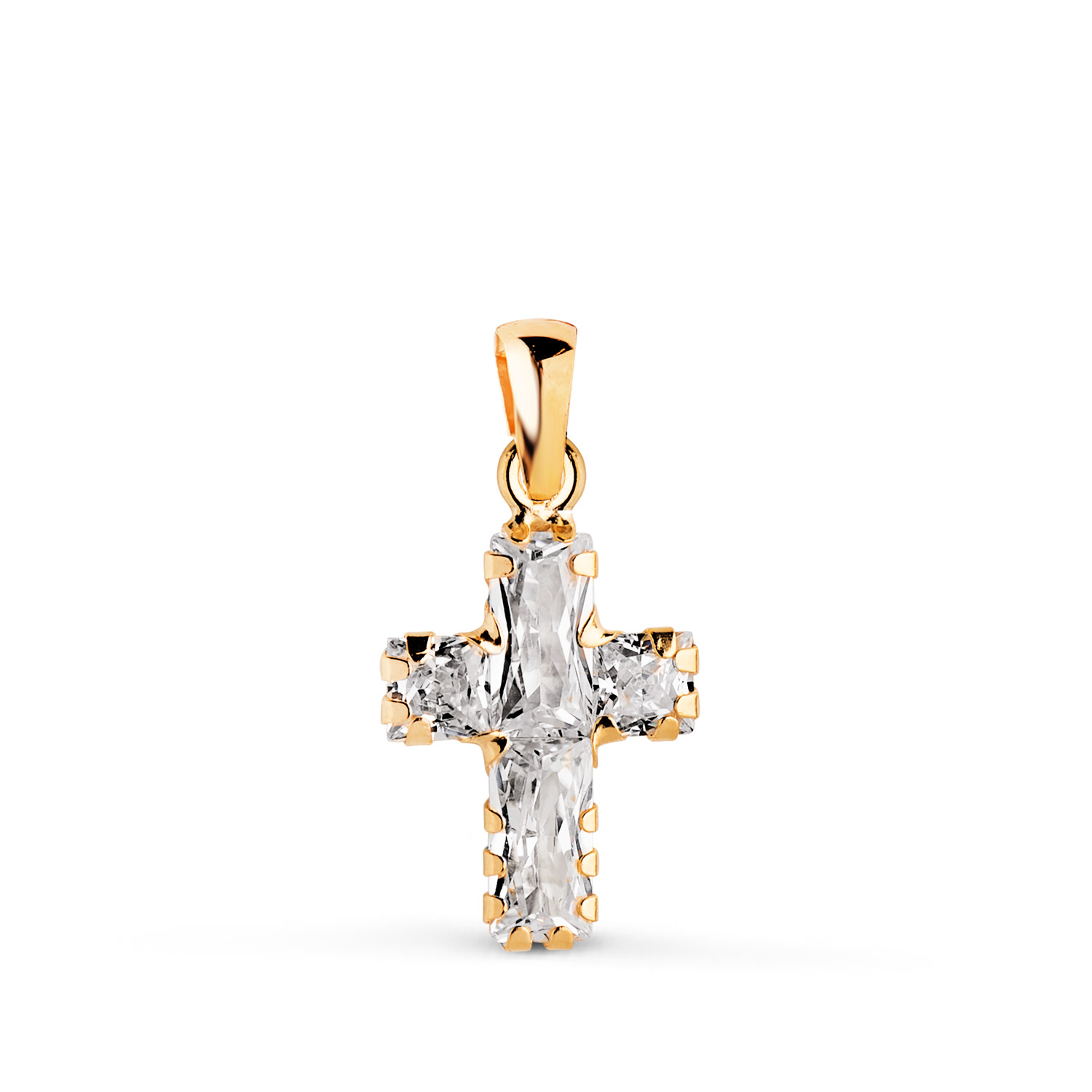18K CRUZ ORO AMARILLO CON CIRCONITAS EN TALLA BAGUETTE. MEDIDA: 15 X 9,5 MM