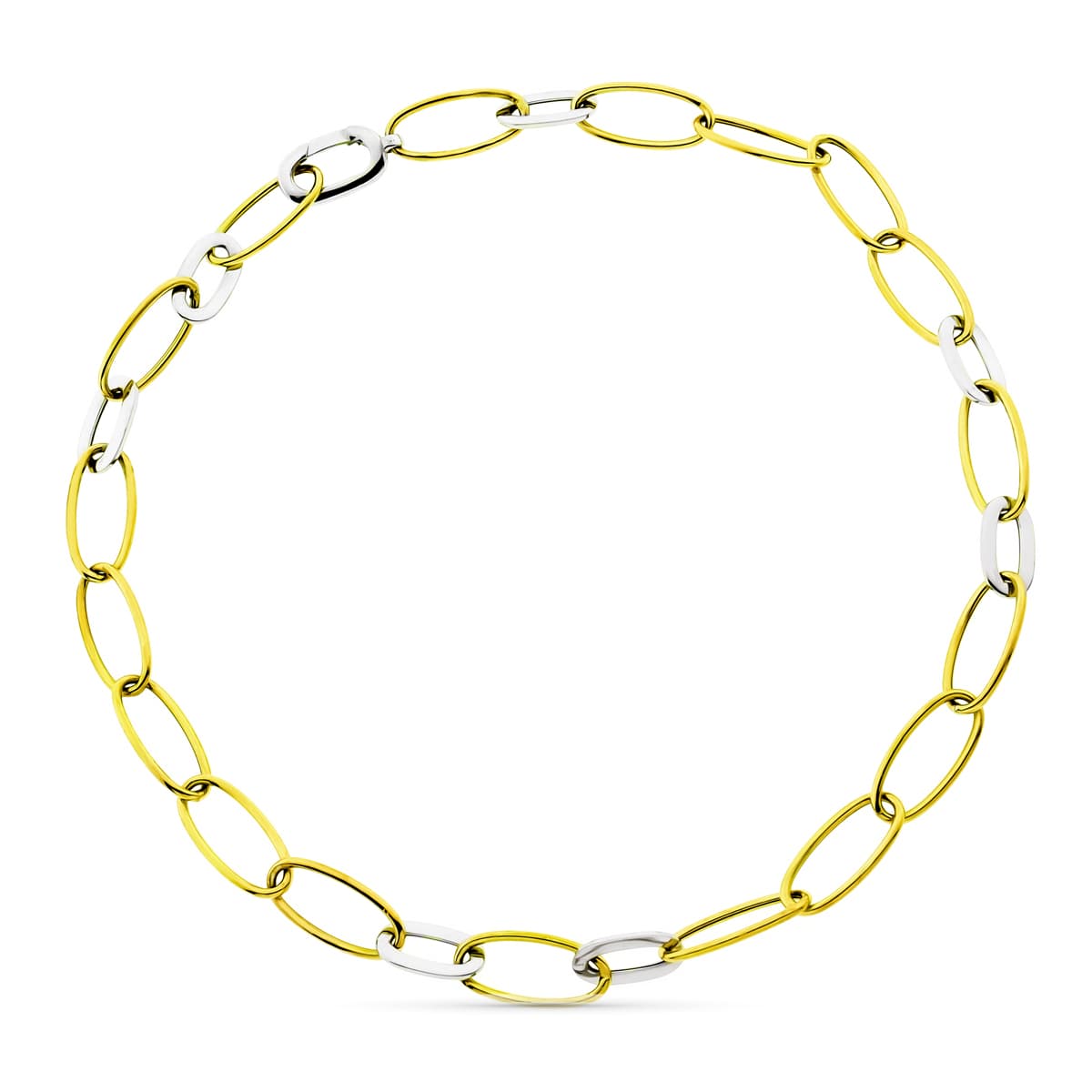18K GARGANTILLA BICOLOR ESLABONES OVALES, ANCHO 10 MM LARGO 43CM