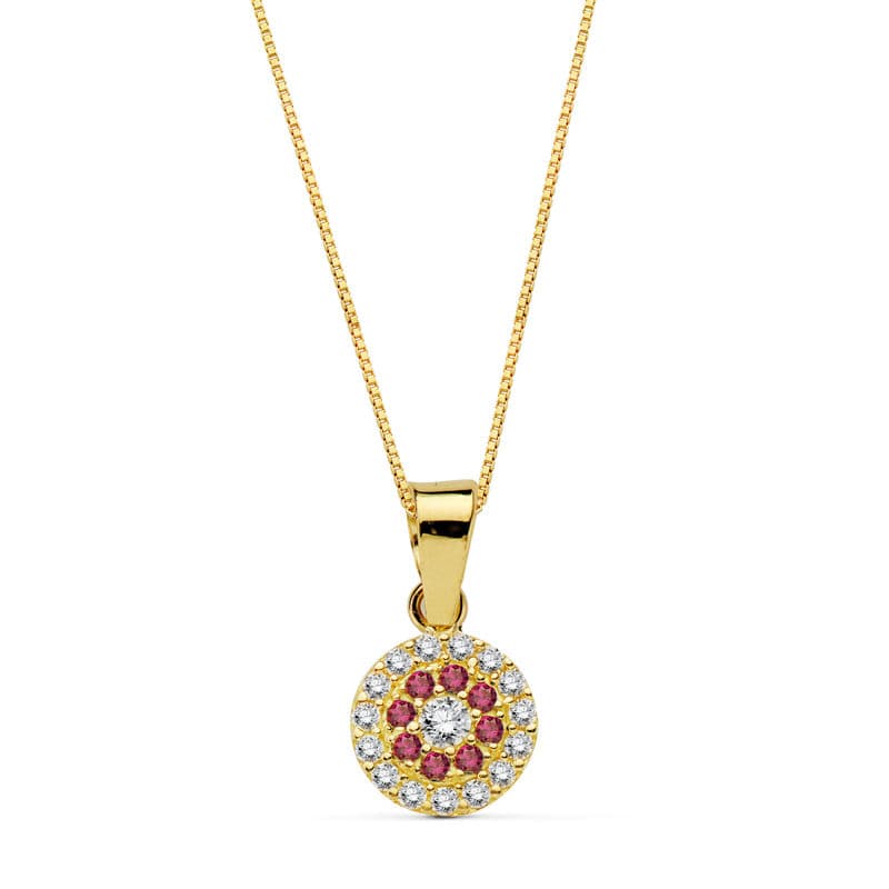 18K GARGANTILLA COLLAR ORO AMARILLO REDONDO PIEDRA ROJA 7 MM CADENA 45CM