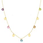 18K GARGANTILLA ORO AMARILLO PLACA CHAPAS 5 MM Y PIEDRAS 5 MM CADENA FORZADA 45CM