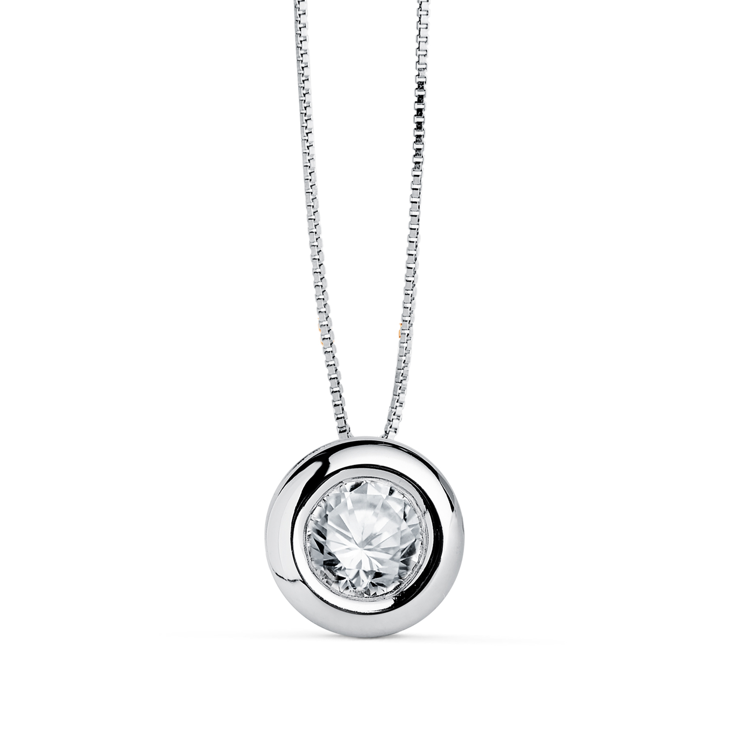 18K GARGANTILLA ORO BLANCO CHATON 8MM DIAMANTE LABORATORIO 5 MM 0,325 QTS. G-VS2. CADENA 42CM