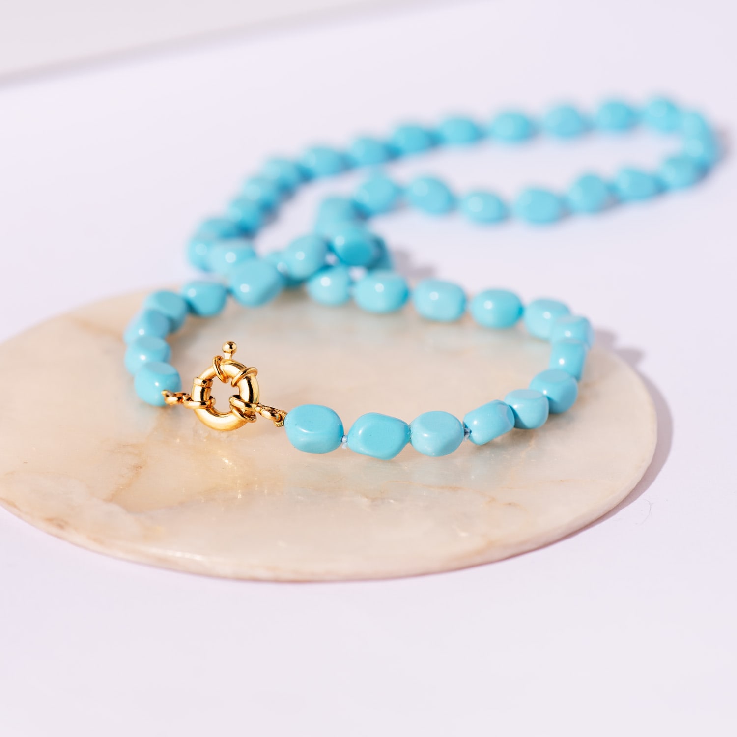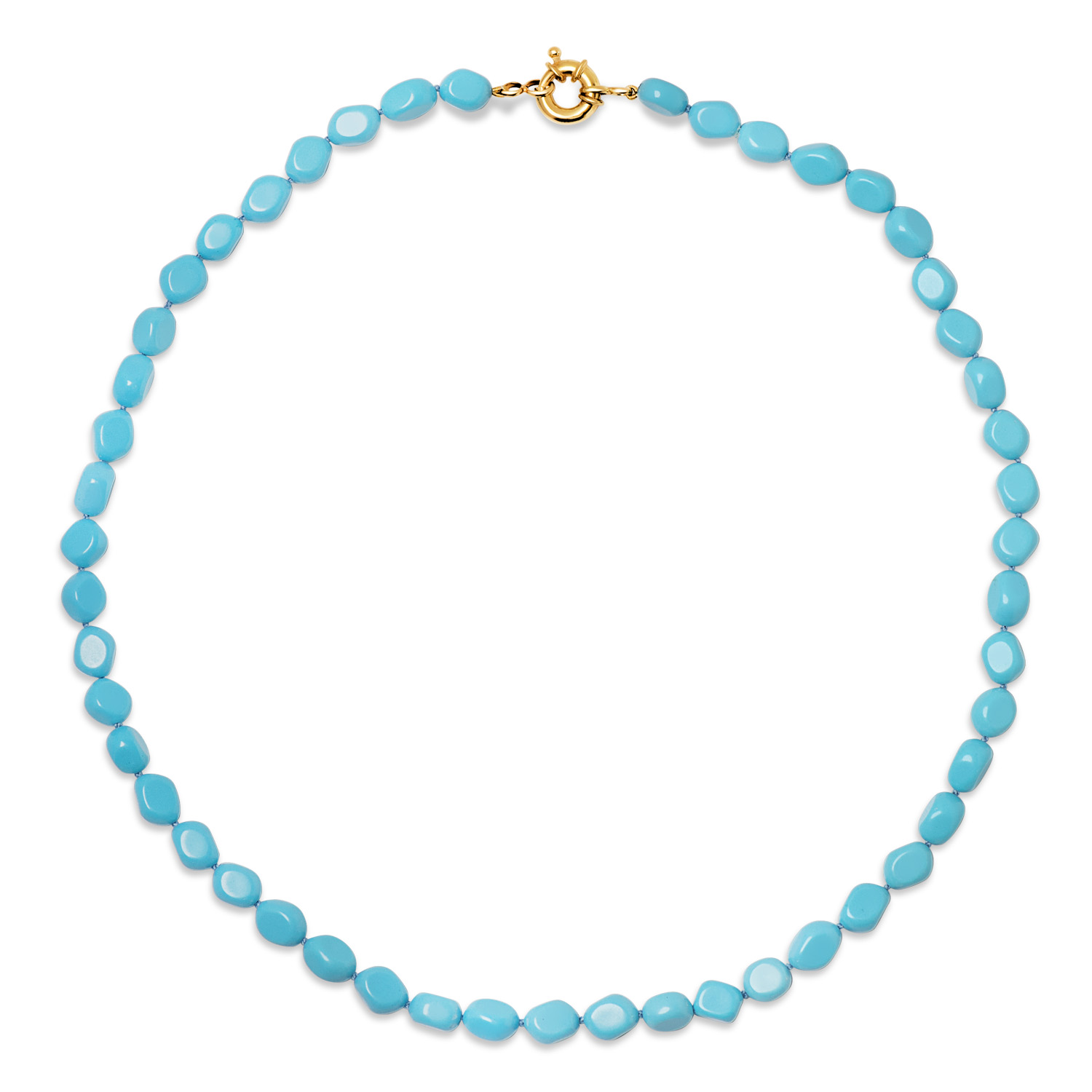 18K GARGANTILLA TURQUESAS LARGO: 45CM CIERRE DE TIMON 10MM ORO AMARILLO