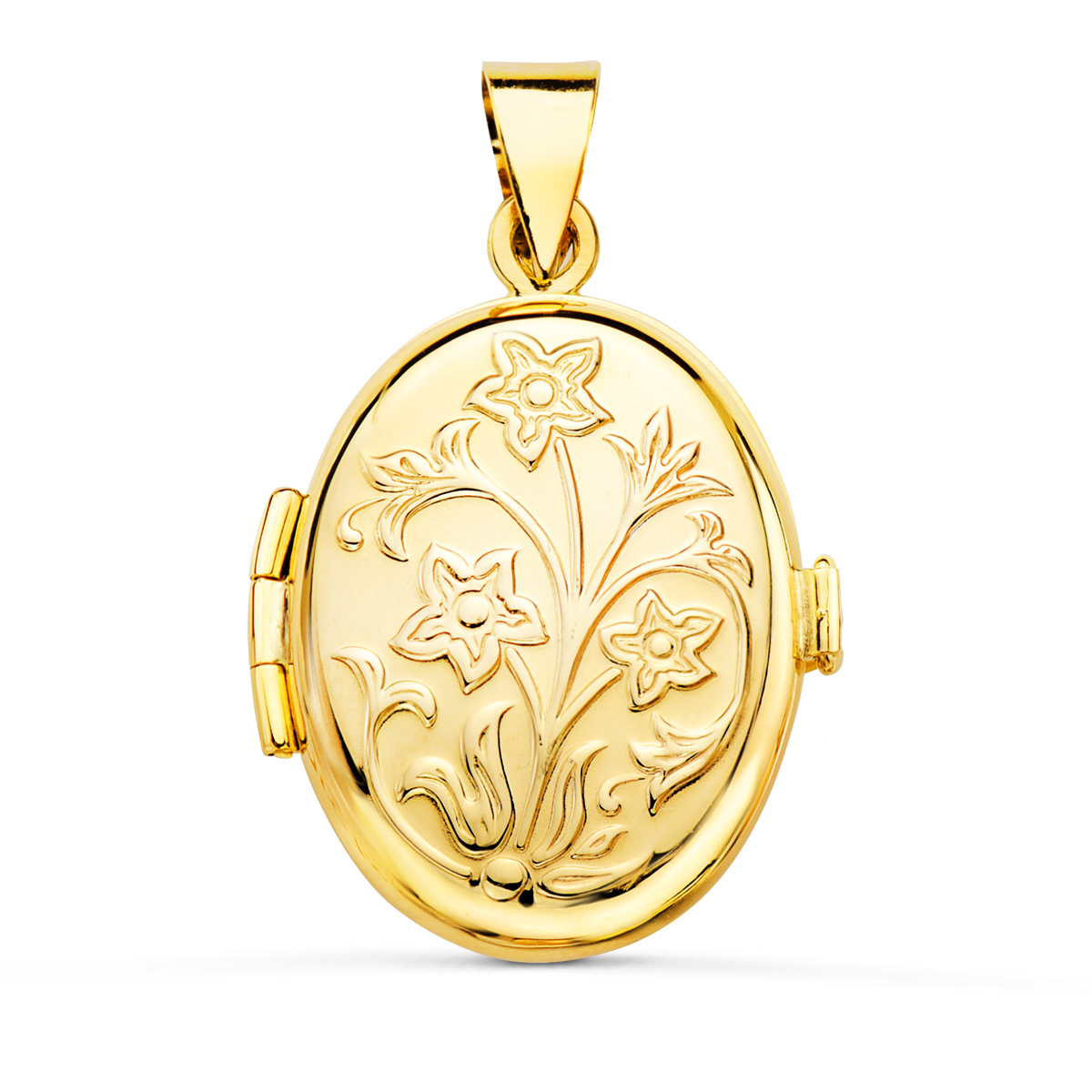 18K GUARDAPELO DIJE PORTAFOTOS OVAL ORO AMARILLO LABRADO, 26X21 MM
