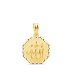 18K MEDALLA ORO AMARILLO ALA ES GRANDE OCTOGONO TALLADA Y MATIZADA 15X15 MM