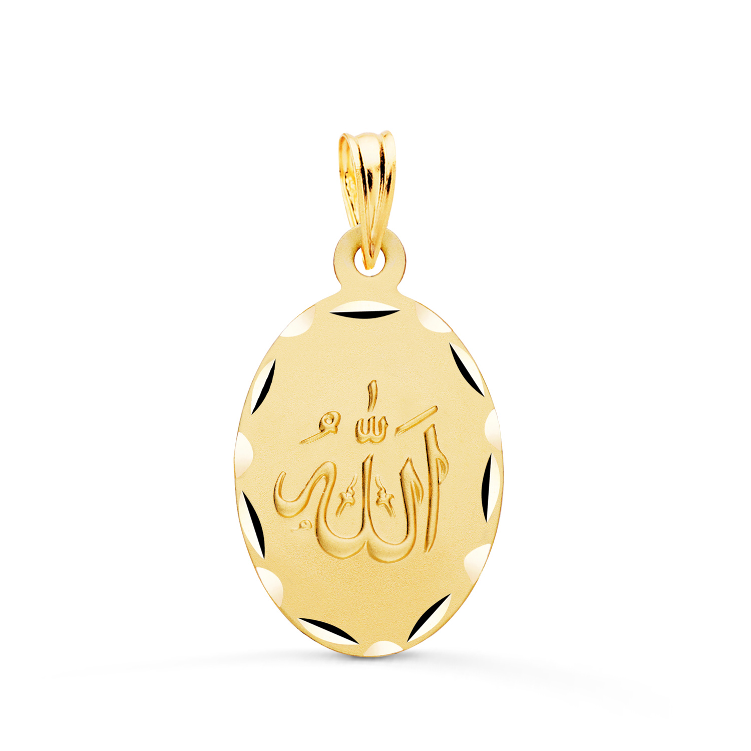 18K MEDALLA ORO AMARILLO ALA ES GRANDE OVAL TALLADA Y MATIZADA 22X14 MM