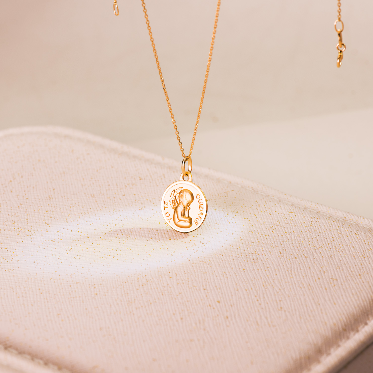 18K MEDALLA ORO AMARILLO ANGELITO «YO TE CUIDARE» BISEL. MEDIDA: 14 MM