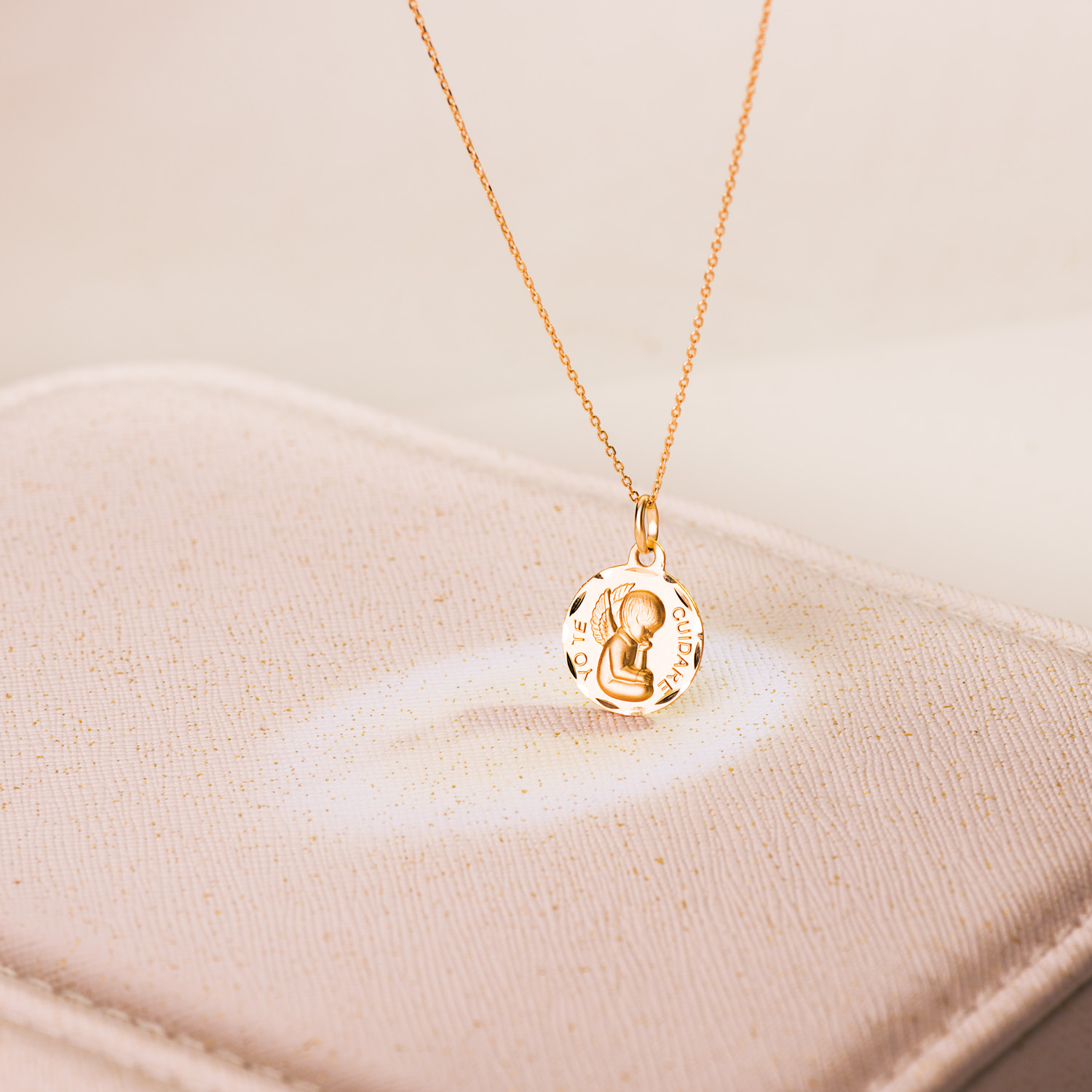 18K MEDALLA ORO AMARILLO ANGELITO «YO TE CUIDARE» TALLADA. MEDIDA: 14 MM