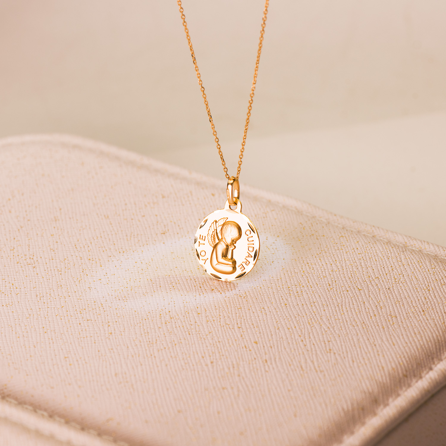 18K MEDALLA ORO AMARILLO ANGELITO «YO TE CUIDARE» TALLADA. MEDIDA: 16 MM