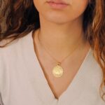 18K MEDALLA ORO AMARILLO CORONA CON BORDE DE GRECA CALADA, 27 MM