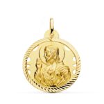 18K MEDALLA ORO AMARILLO CRISTO SAGRADO CORAZON DE JESUS HELICE CALADA 26 MM