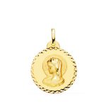 18K MEDALLA ORO AMARILLO VIRGEN MARIA ( VIRGO VIRGINIUM ) TALLA CRUZADA 20 MM
