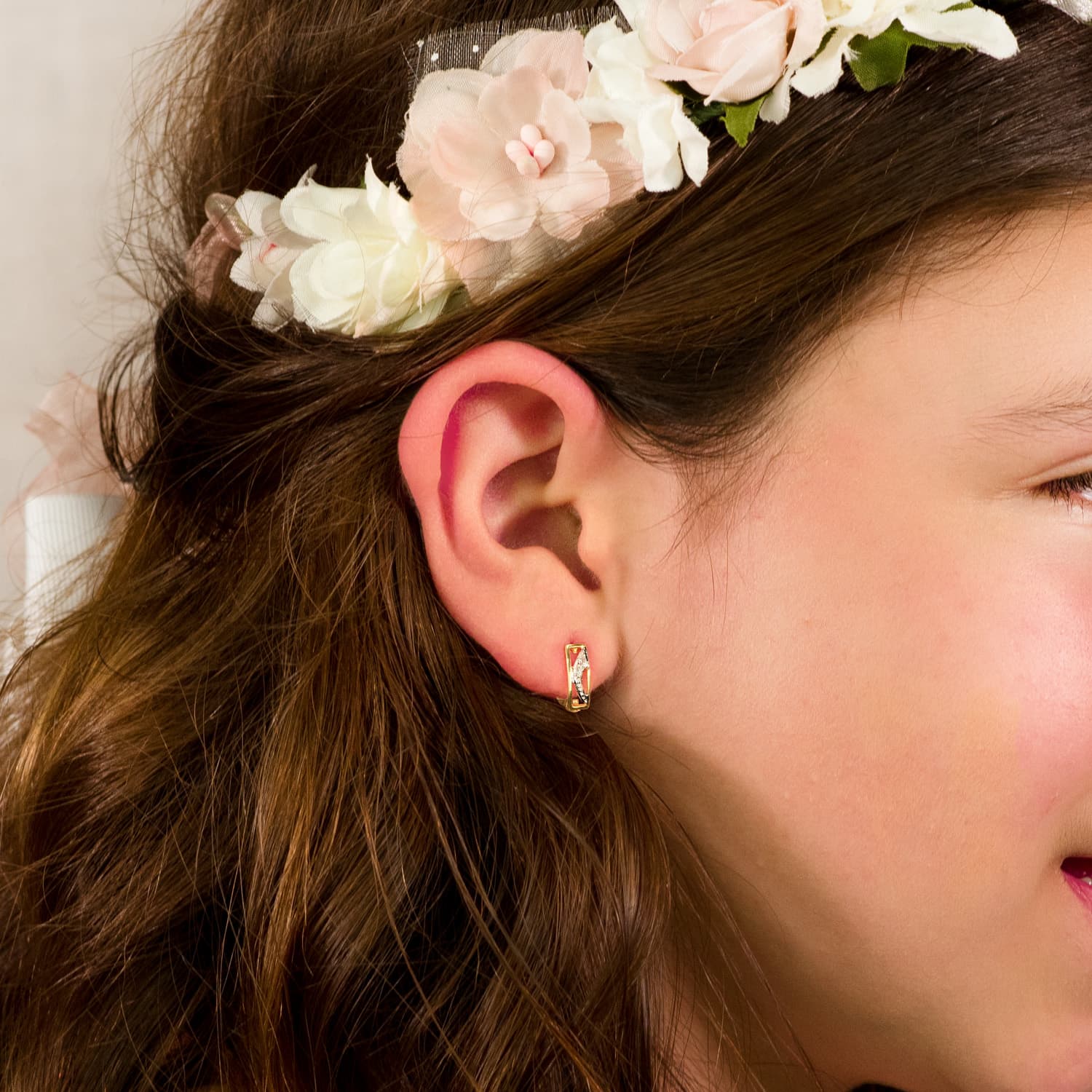 18K PENDIENTES BICOLOR CIRCONITA 10X4 MM CIERRE CATALAN