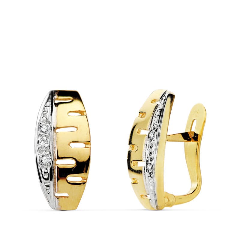 18K PENDIENTES BICOLOR CIRCONITA 13X6 MM CIERRE CATALAN