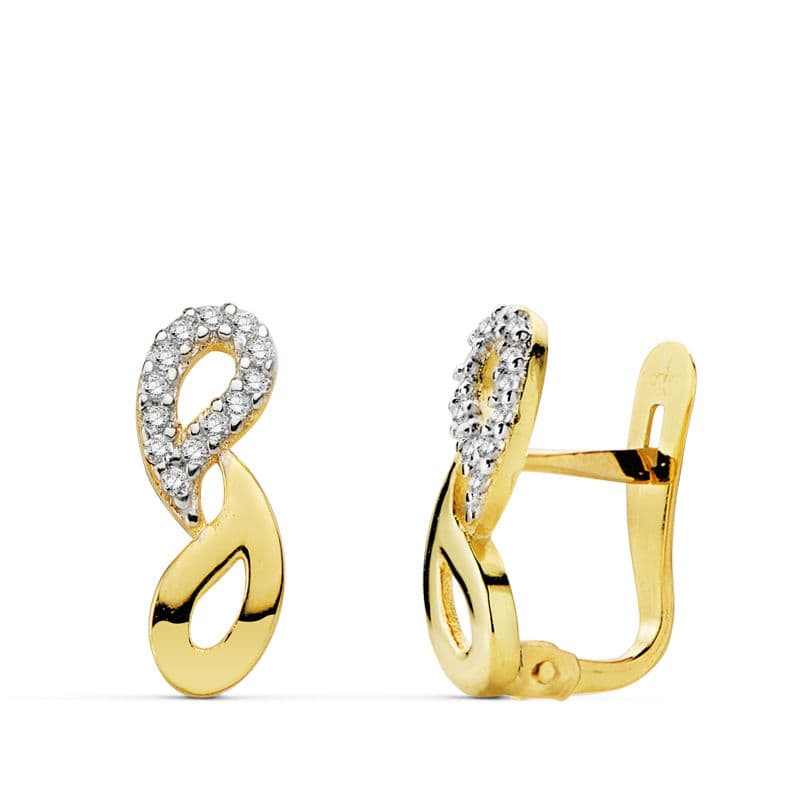 18K PENDIENTES CIRCONITA BICOLOR 13X5 MM CIERRE CATALAN