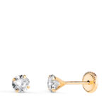 18K PENDIENTES ORO AMARILLO 4 GARRAS CON CIRCONITA, ANCHO: 4 MM CIERRE TUERCA