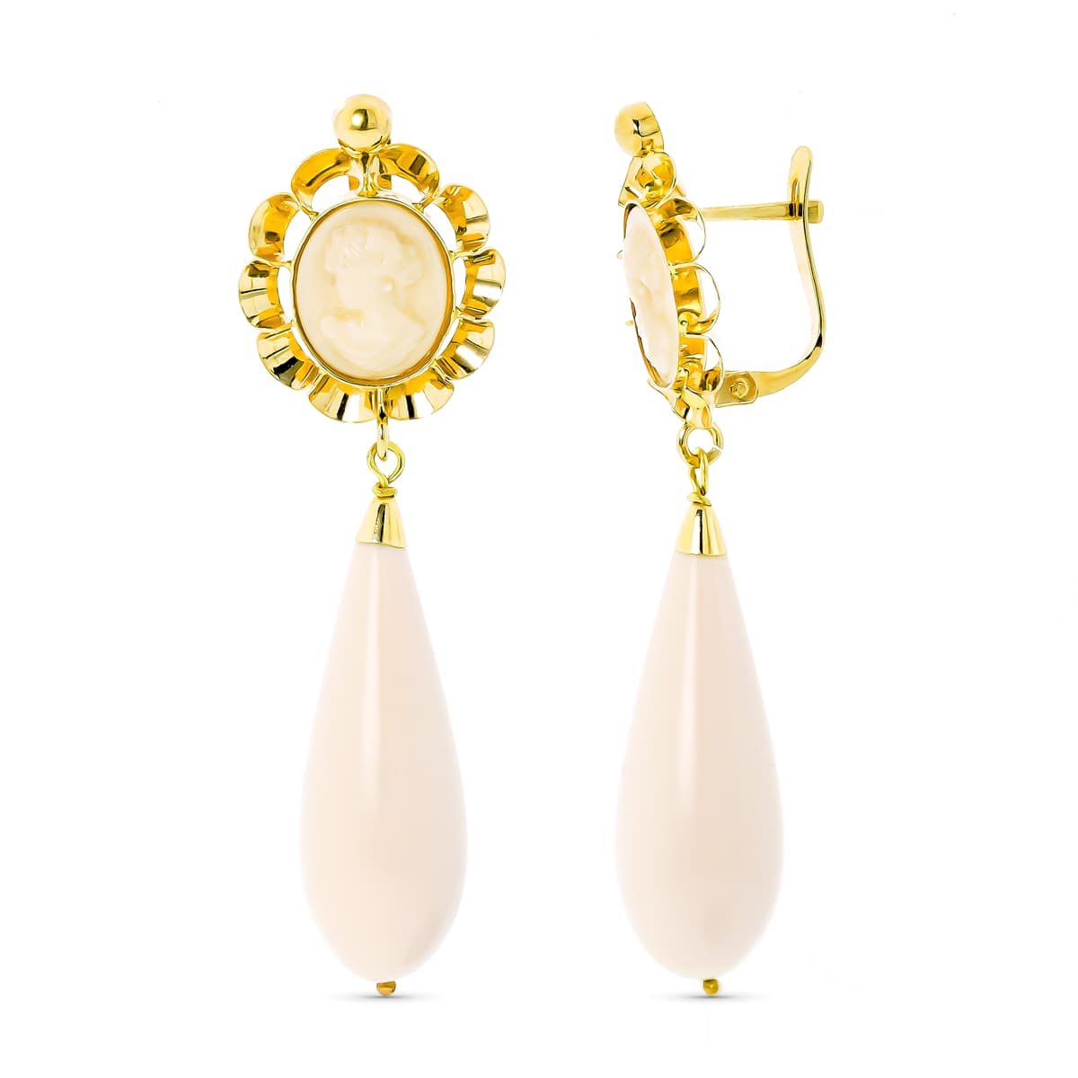 18K PENDIENTES ORO AMARILLO CAMAFEO MARFIL CIERRE CATALÁN