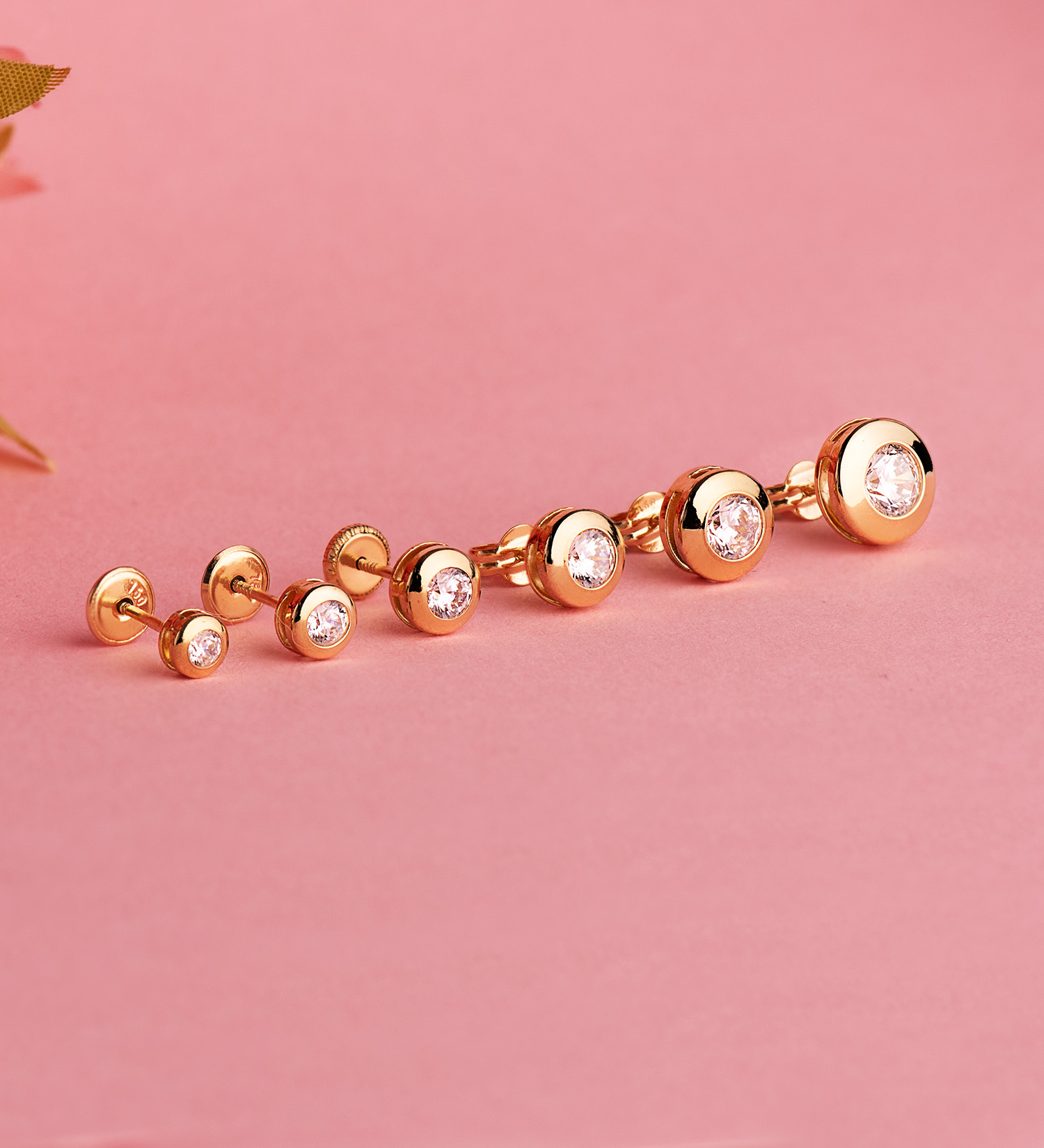 18K PENDIENTES ORO AMARILLO CHATON GALERIA CON CIRCONITA, MEDIDA: 4 MM, CIERRE TUERCA
