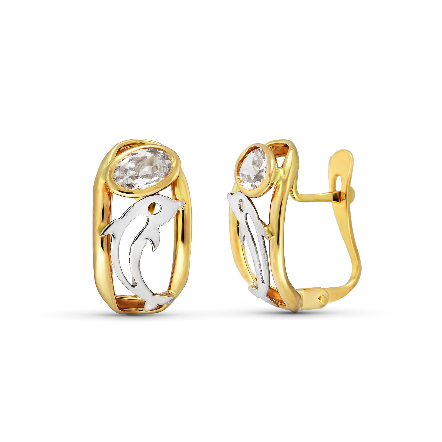 18K PENDIENTES ORO AMARILLO CIRCONITA Y DELFIN 15X8 MM CIERRE CATALAN