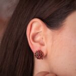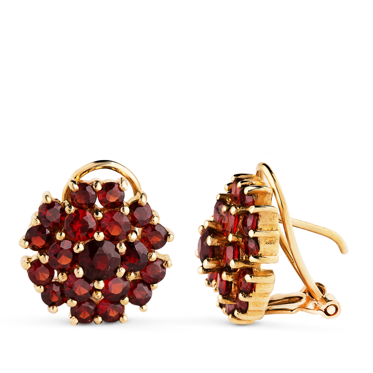 18K PENDIENTES ORO AMARILLO CON GRANATES EN GARRAS, MEDIDA: 14X14 MM CIERRE OMEGA