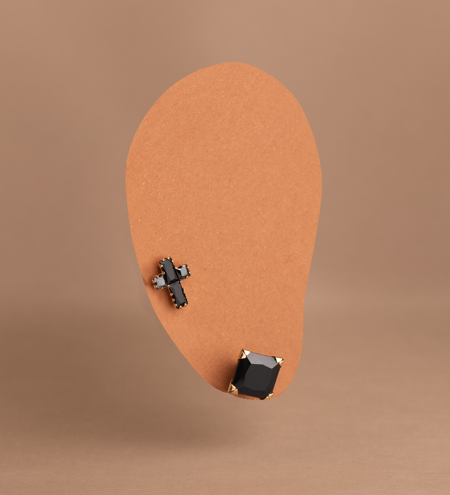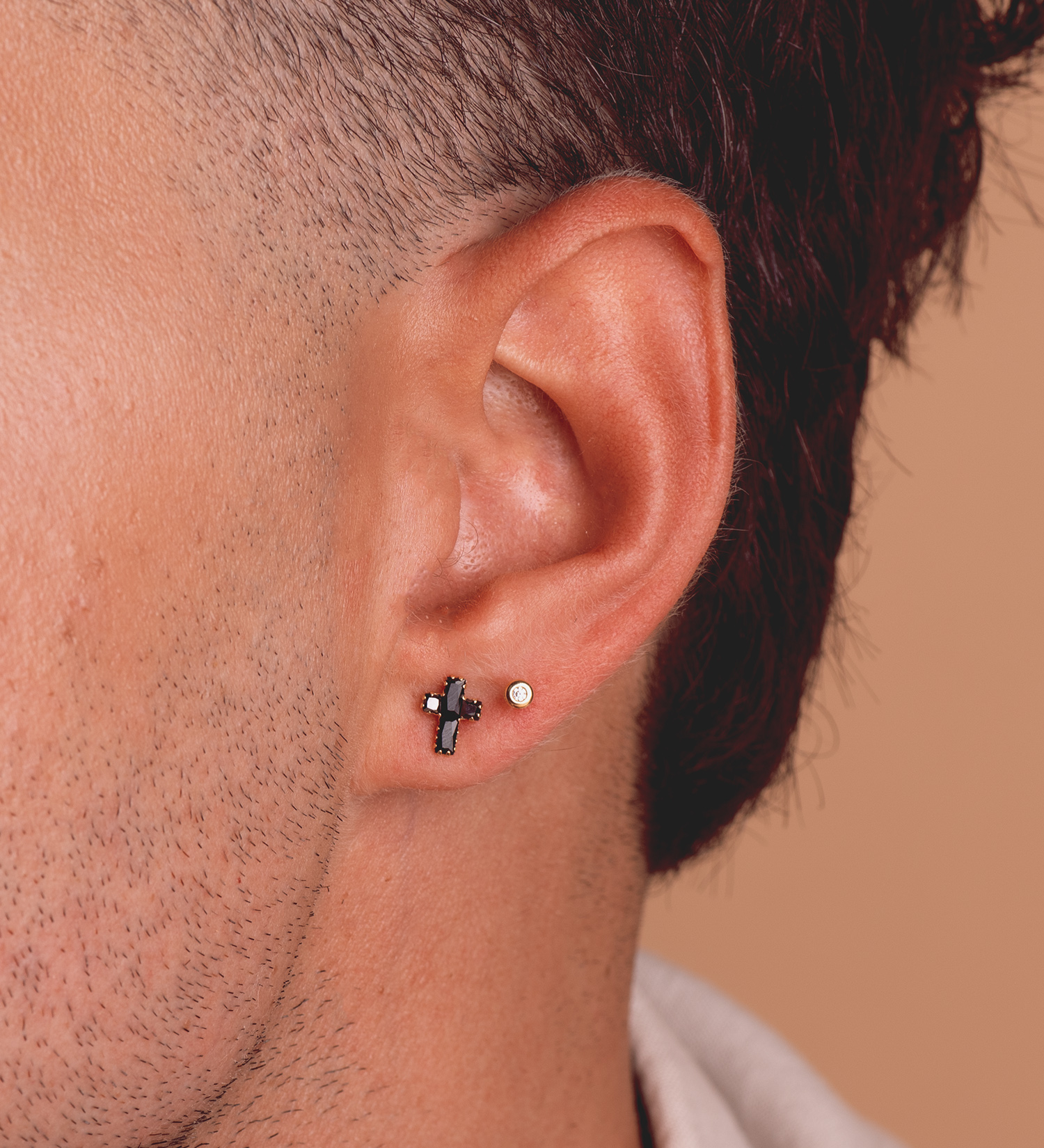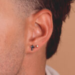 18K PENDIENTES ORO AMARILLO CRUZ CON CIRCONITAS NEGRAS BAGUETTE, 8,5 X 6,5 MM, CIERRE PRESION
