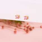 18K PENDIENTES ORO AMARILLO CUADRADOS PIEDRA COLOR ROSA 5,5 X 5,5 MM, CIERRE PRESION