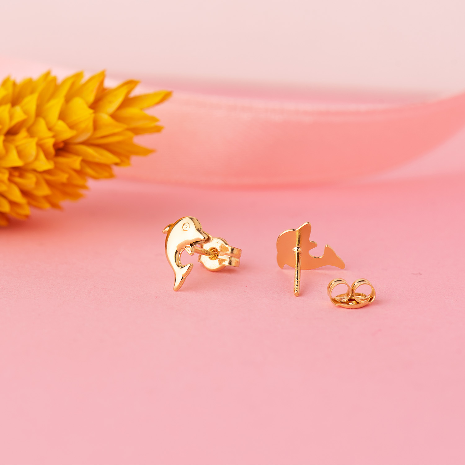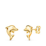 18K PENDIENTES ORO AMARILLO DELFINES LISOS 8 X 6 MM, CIERRE PRESION